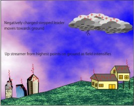 We are the most concern about the cloud to ground strike. The build up to this awesome event starts with a luminescent leader that forms in the base of the cloud and proceeds to wards ground in steps and form little branches.