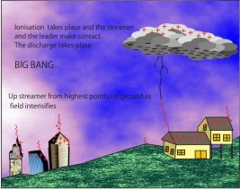 Under the right conditions the upward streamers will attract the downward leader and the ionization path between the cloud and the ground are complete. The lightning discharge is a much rapped event and only last for a view micro seconds.