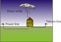 Direct lightning strikes on power lines or telecom lines can have devastating effects to all users of power or telecom lines. Ones lightning strikes a power line the current will run in both directions and will dissipates into the grid. Ones in the grid it can run for tens of kilometers and leave a path of destruction in its wake.